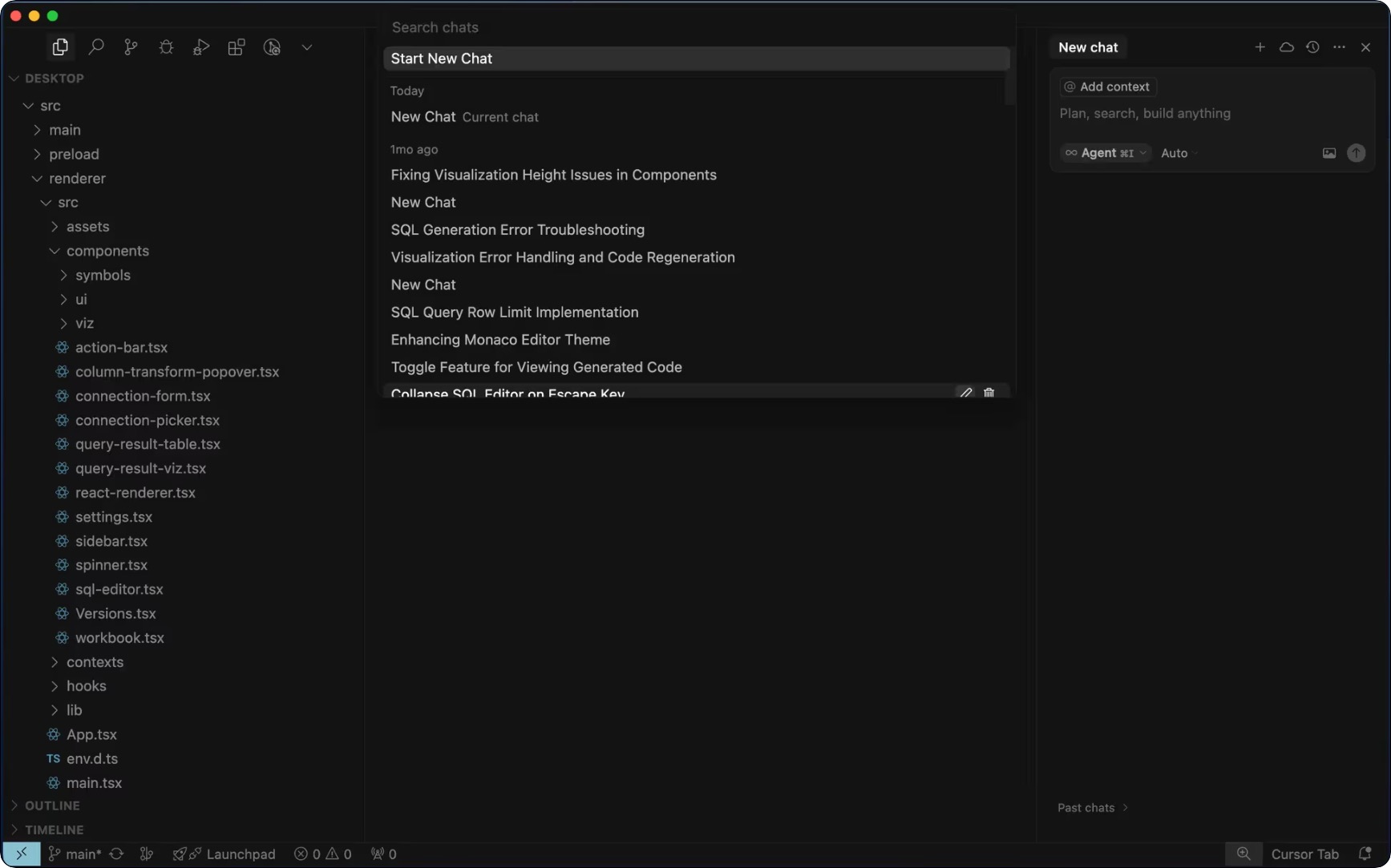 - 채팅 기록이 명령 팔레트로 이동하여 접근이 쉬워졌습니다. 채팅창의 "Show history 버튼" 또는 Show Chat History 명령어로 확인 가능합니다.