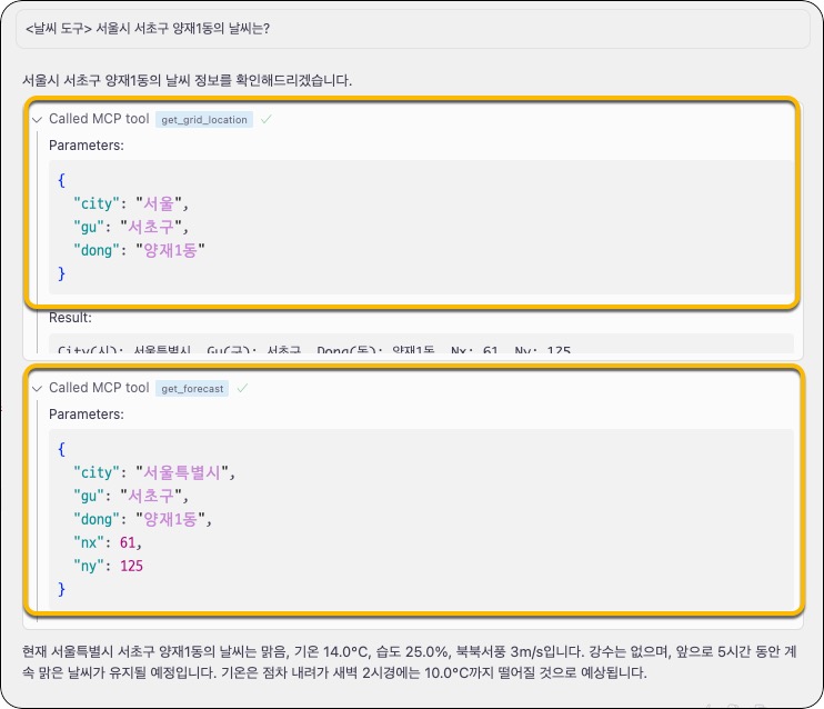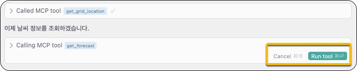 - Agent가 필요하다고 판단할 경우, 자동으로 해당 MCP 도구를 호출합니다.