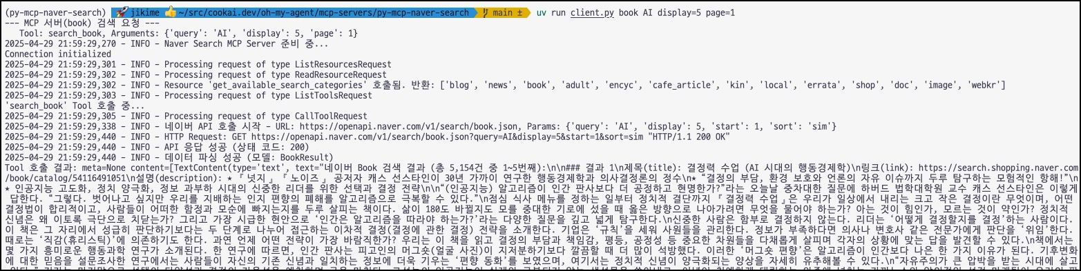 uv run client.py book "파이썬 프로그래밍" display=5 page=1