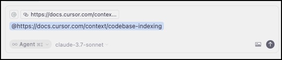 @Docs > Add new doc을 통해 URL을 붙여 넣어 사용자 지정 문서를 추가하고 인덱싱할 수 있습니다. 추가된 문서는Cursor Settings > Features > Docs에서 관리(편집, 삭제, 추가)할 수 있으며, Cursor는 주기적으로 재인덱싱하여 최신 상태를 유지합니다.